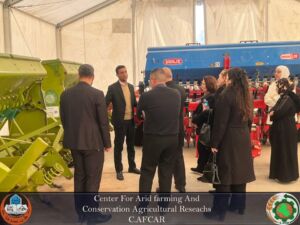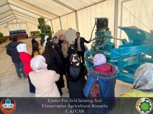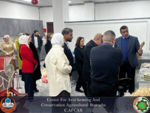 The visiting delegation was welcomed by Professor Dr. Mohammed Subhi Al-Taweel, Director of the Center for Arid Farming and Conservation Agriculture Researches, along with the heads of the Center’s scientific departments. During the meeting, a comprehensive presentation was delivered on the nature of the Center’s work, its research and service activities, and its role in serving farmers and supporting the agricultural sector and scientific research, particularly in dry and semi-arid environments.