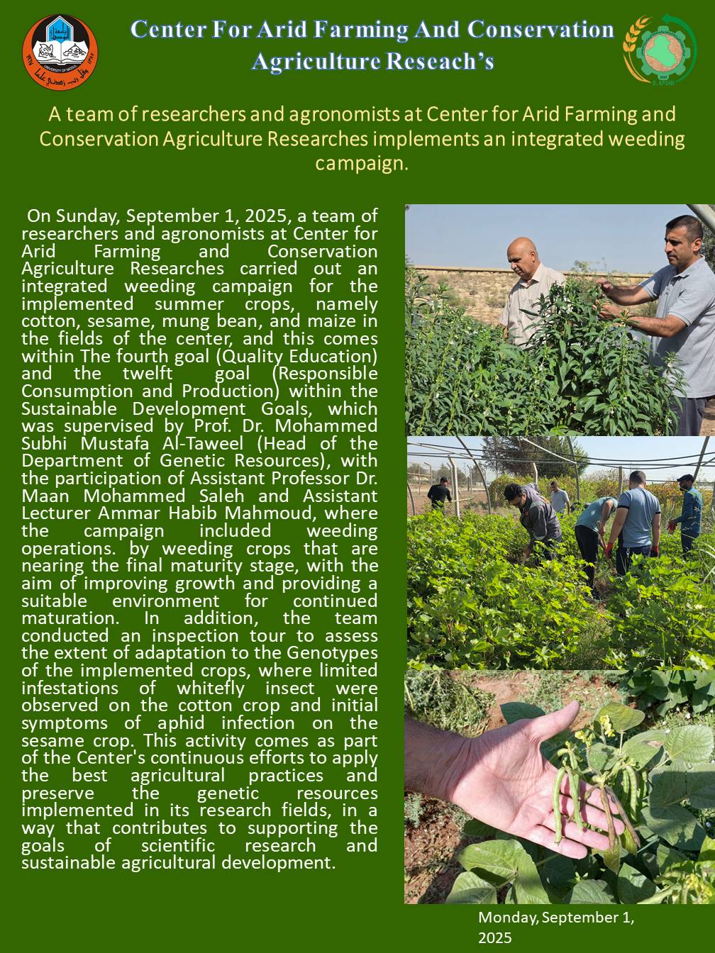 #University_of_Mosul. #Center_for_Arid_Farming_and_Conservation_Agriculture_Research’s. #sustainable_development.