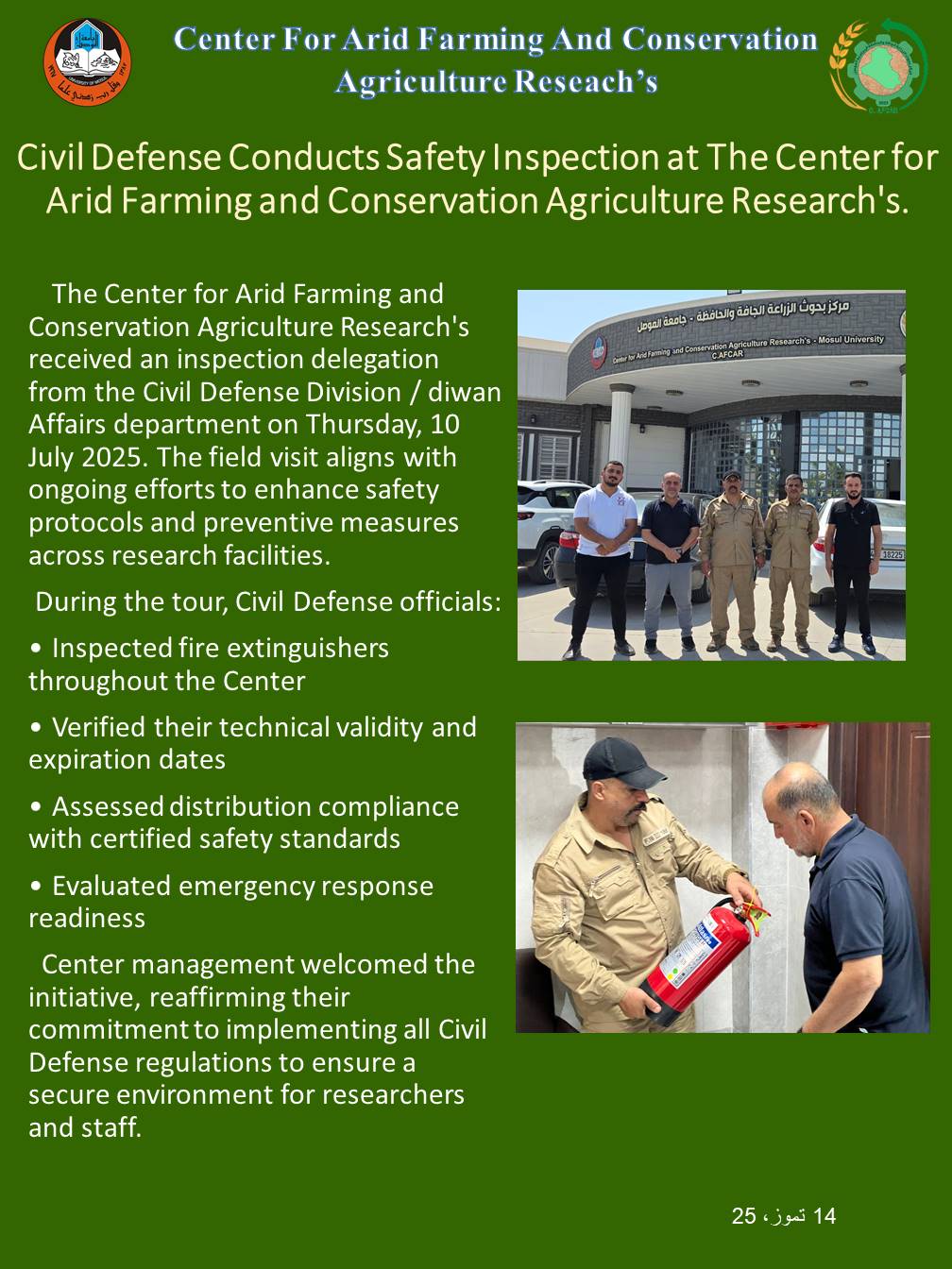 Civil Defense Conducts Safety Inspection at The Center for Arid Farming and Conservation Agriculture Research’s.