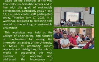 The Center for Arid Farming and Conservation Agriculture Research’s participates in a workshop to enhance the ranking of the University of Mosul among sustainable universities programme.