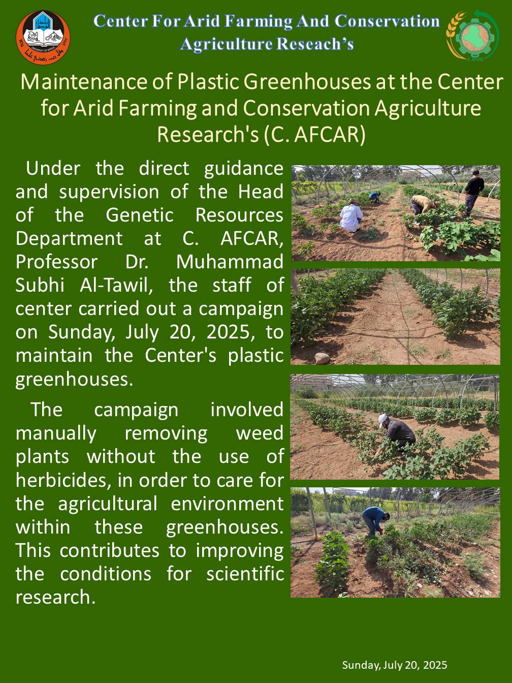 Maintenance of Plastic Greenhouses at the Center for Arid Farming and Conservation Agriculture Research’s (C. AFCAR) .