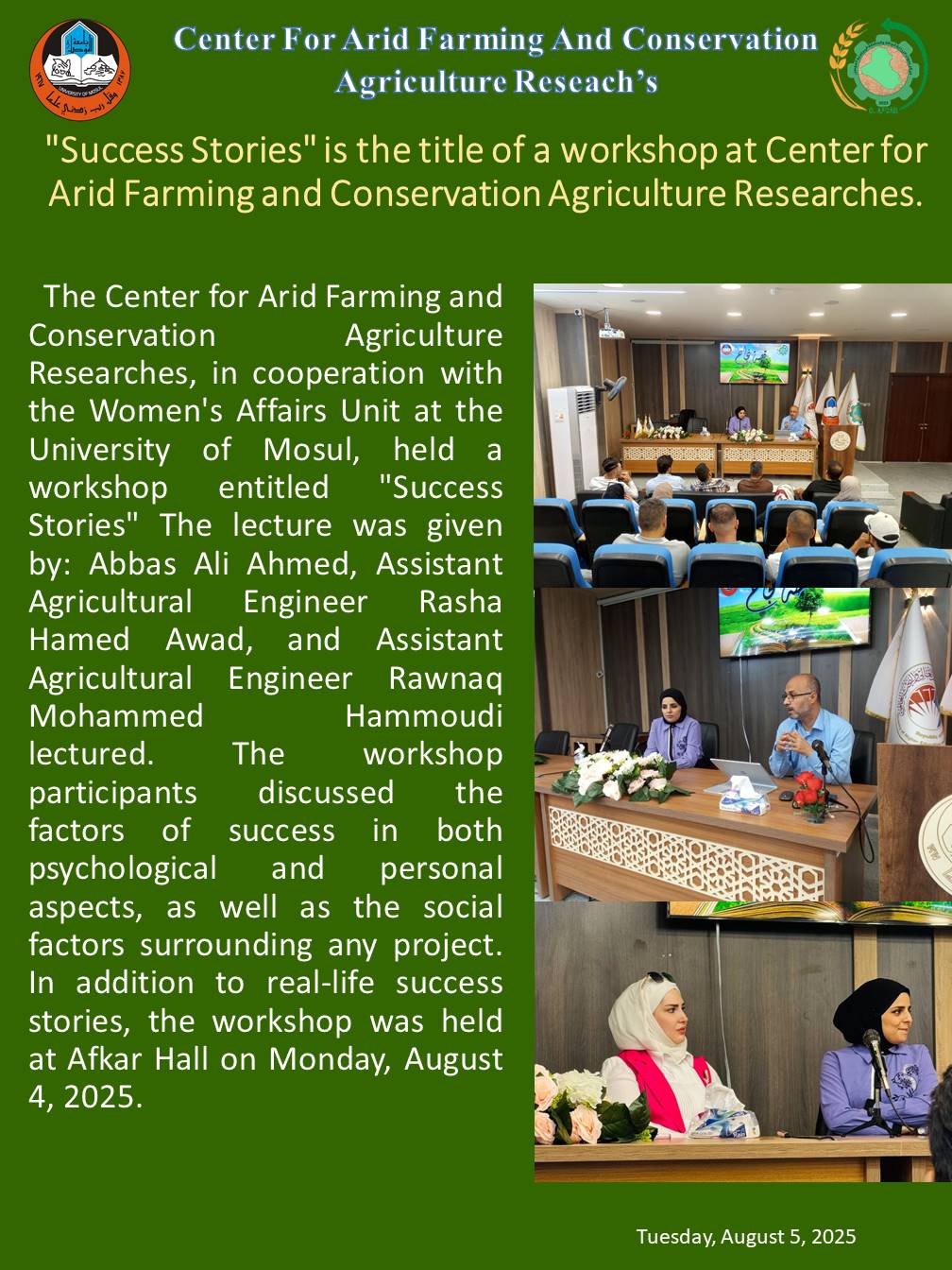 “Success Stories” is the title of a workshop at Center for Arid Farming and Conservation Agriculture Researches.