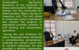 A delegation from the Ministry of Agriculture/ Forestry and Desertification Directorate, and the Planning Directorate/ Agricultural Mechanization Department, have visited the University of Mosul/ Center for Arid Farming and Conservation Agriculture Research’s in order to strengthen cooperation in conservation of agriculture technologies.