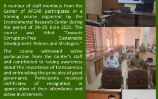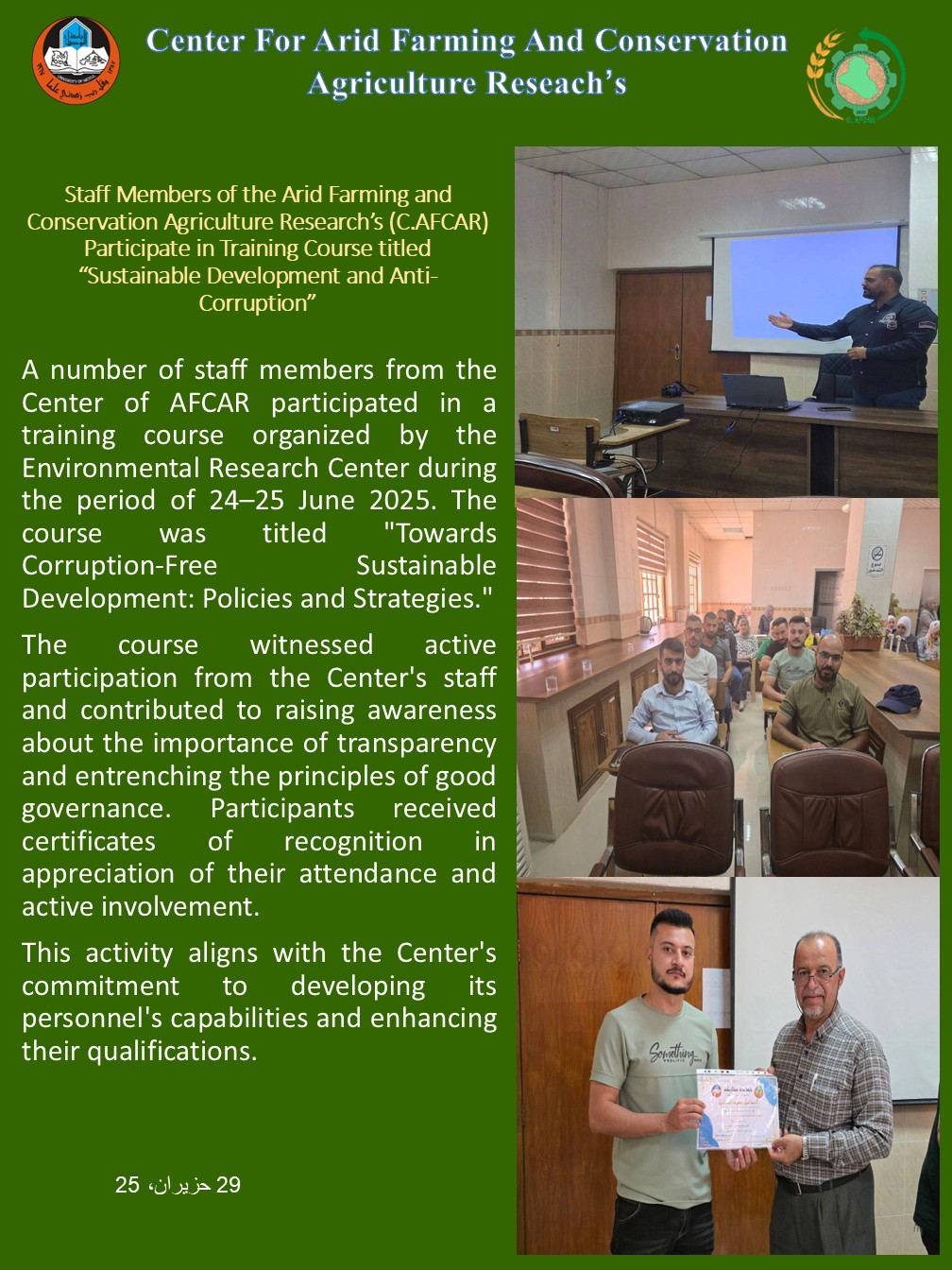 Staff Members of the Arid Farming and Conservation Agriculture Research’s (C.AFCAR) Participate in Training Course titled “Sustainable Development and Anti-Corruption”