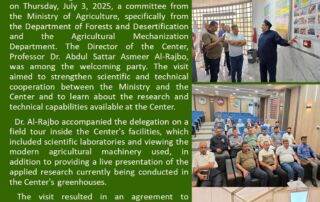 Under the supervision of the Director of the Center for Arid Farming and Conservation Agriculture Research’s (C.AFCAR), the following center’s staff conducted a field visit to Tel Afar district on June 11, 2025. The [Read More]