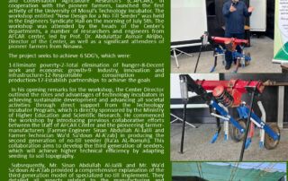 First Activity related to the Technology Incubator at the University of Mosul, the Center for Arid Farming and Conservation Agriculture Research’s (C.AFCAR), in collaboration with the pioneer farmers, holds a workshop titled “New Design for a No-Till Seeder”