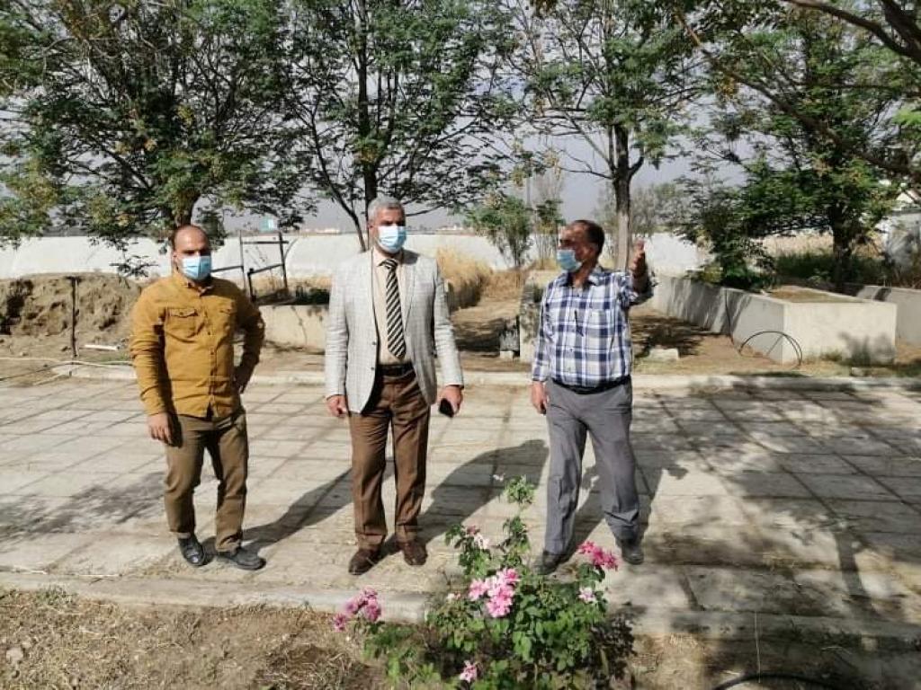 Inspection tours of the Dean of the College of Agriculture and Forestry for the departments. Assistant Prof. Dr. Mohammed Younis Al-Allaf, accompanied by the Head of the Forest Department, Prof. Dr. Muzahim Al-Bak, visited the site of establishing the botanical garden near the wooden canopy inside the university campus at the site of the palaces.The visit was to perfectly prepare the requirements for its establishment by determining the sites for planting forest trees and providing a source for watering the trees and plants to be cultivated by digging wells and establishing an irrigation network.The Dean also visited the nursery of the Forestry Department to view the researches of postgraduate students and follow up on the types of forest seedlings within the project of planting a million trees.
