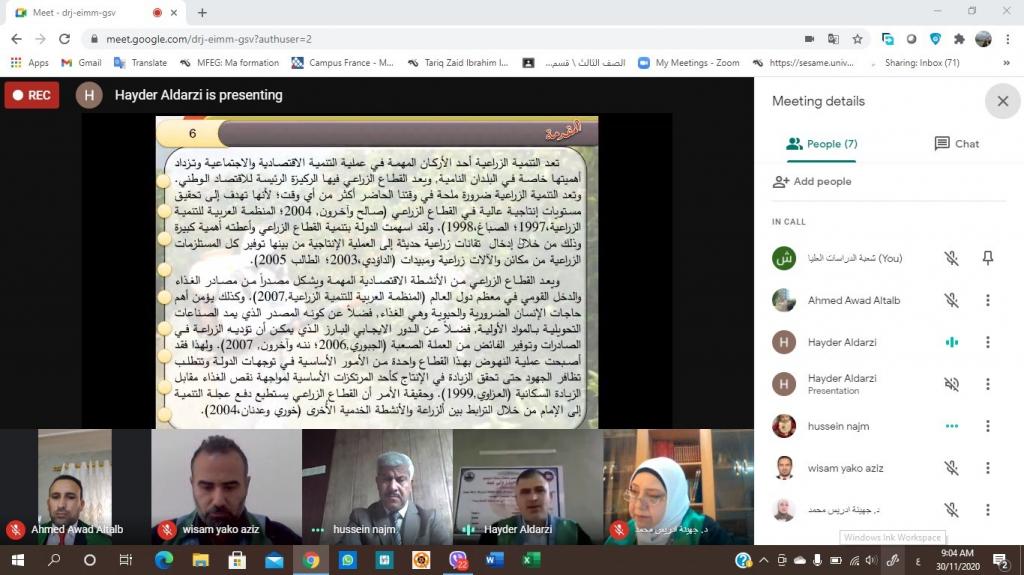 The Dean of the College, Asst. Prof. Dr. Mohammed Younis Al-Allaf attended a master’s thesis discussion in the Department of Agricultural Extension and Technology Transfer / College of Agriculture and Forestry / University of Mosul, for the student (Mr. Haider Weley Abdul) on Monday 30/11/2020 in the relying on remote electronic communication with the members of committee discussionThen the discussion committee read the decision which included acceptance of the thesis and award the student an M.Sc. degree.*****Congratulations on Obtaining Your Master’s Degree*****