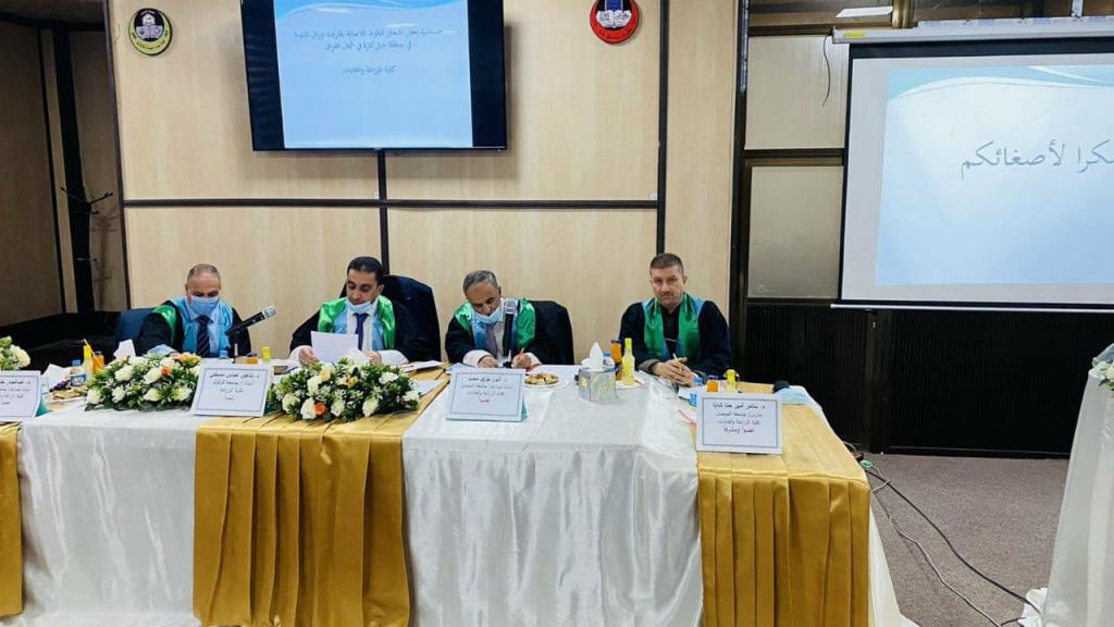 The Dean of the College, Asst. Prof. Dr. Mohammed Younis Al-Allaf and his Deputies for Scientific and Administrative Affairs attended a master’s thesis discussion in the Department of Forests/ College of Agriculture and Forestry / University of Mosul, for the student (Mr. Mustafa Mudhar Ali) on Monday 14/12/2020.Then the discussion committee read the decision which included acceptance of the thesis and award the student an M.Sc. degree.*****Congratulations on Obtaining Your Master’s Degree*****