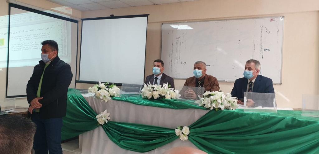 The Dean of the College, Dr. Muhammad Yunus Al-Allaf, accompanied by his assistants for scientific and administrative affairs, met with a number of new undergraduate students accepted in our college for the academic year 2020-2021.At the beginning of the meeting, the Dean welcomed the new students, wishing them a year of success and excellence in their scientific life. Mr. Al-Allaf also thanked the new students for their insistence to continue their scientific careers despite the circumstances and challenges.In the same context, the Deanship of the College and cooperation with the Division of Quality Assurance and Performance Assessment held an introductory lecture for first-stage students on the e-learning platforms and the programs that are used in e-learning.The lecture aims to introduce students to the use of electronic platforms and the method of performing examinations within the electronic classes. The lecture was given by Asst. Lecturer Muhammad Muadh and Asst. Lecturer Mustafa Nazem.