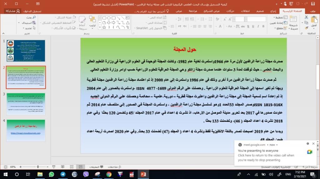The editorial board of Mesopotamia Journal of Agriculture holds a workshop on the electronic receiving and evaluation of scientific research