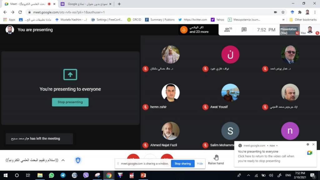 Under the patronage of the Dean of the College of Agriculture and Forestry, Dr. Muhammad Yunus Al-Allaf, the editorial board of the Mesopotamia Journal of Agriculture held a workshop entitled (Electronic receiving and evaluation of scientific research).During the workshop, the lecturers explained the method of receiving and evaluating scientific research completely electronically and how they addressed the steps for entering the journal into the Scopes database. Where the lecturers in the workshop were Prof. Dr. Saeb Yunus Abdel Rahman, Assistant Professor Dr. Khaled Hassani Sultan, and Assistant Lecturer Mustafa Nazim Qaba