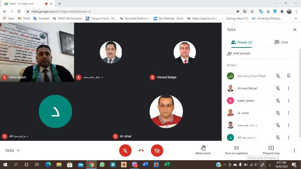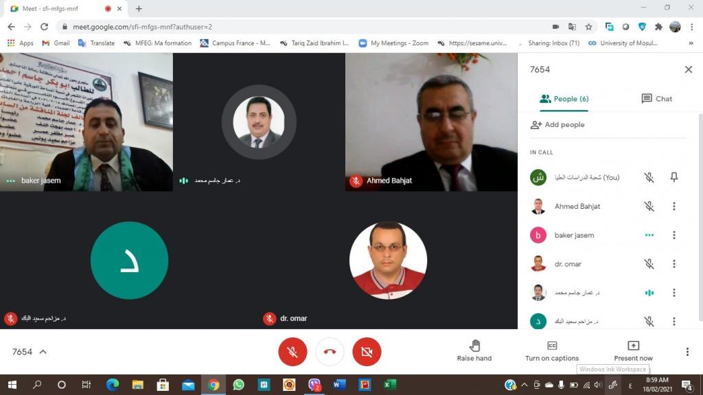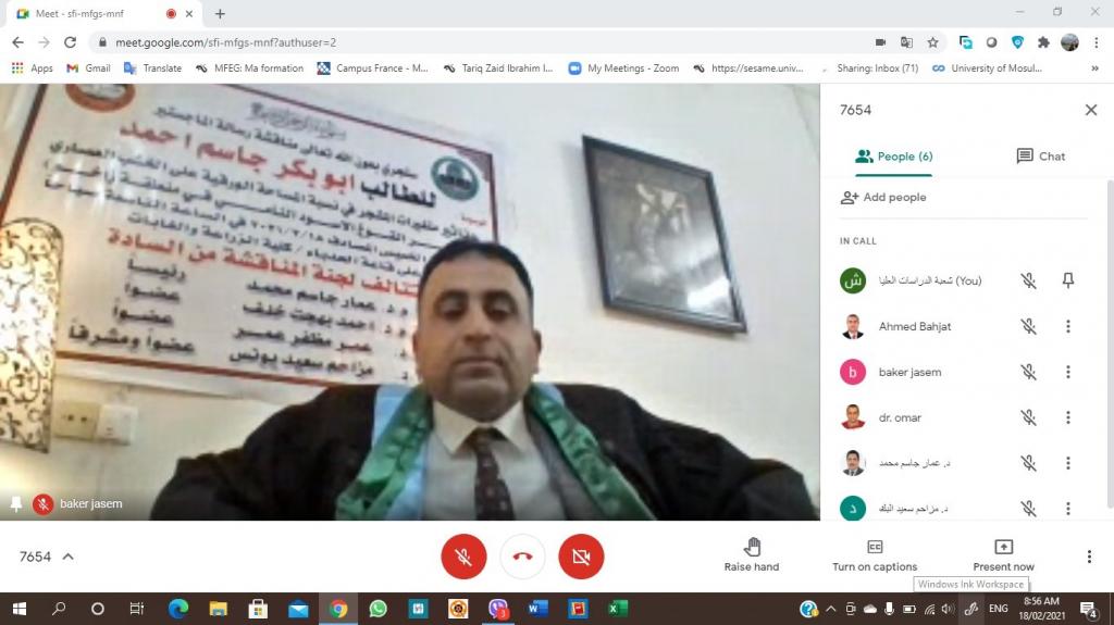 The Dean of the College, Asst. Prof. Dr. Mohammed Younis Al-Allaf attended a master’s thesis discussion in the Department of Forests / College of Agriculture and Forestry / University of Mosul, for the student (Mr. Abu Bakr Jassim Ahmed) on Sunday 21/1/2021Then the discussion committee read the decision which included acceptance of the thesis and award the student an M.Sc. degree. *****Congratulations on Obtaining Your Master’s Degree*****