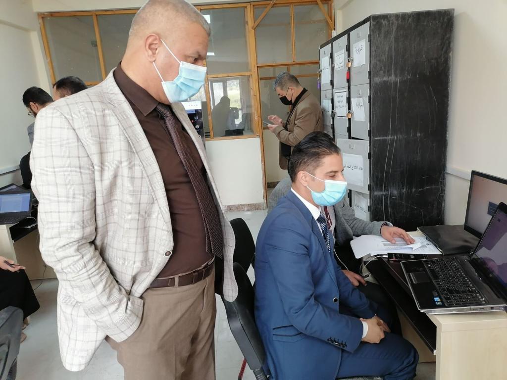 On Monday 3/22/2021, the electronic final exams for undergraduate students in our college departments began under the direct supervision of the Dean of the College, Dr. Muhammad Yunus Al-Allaf, accompanied by his assistants for administrative and scientific affairs, as well as the head of the central examination committee, and members of the sub-committees in the departments of the college.The Dean praised everyone’s efforts in the smooth running of these exams and wished our students continued success. Final electronic exams are conducted according to the Classroom program, with the hope that there will be an attendance exam for a number of subjects after the completion of the electronic exams.