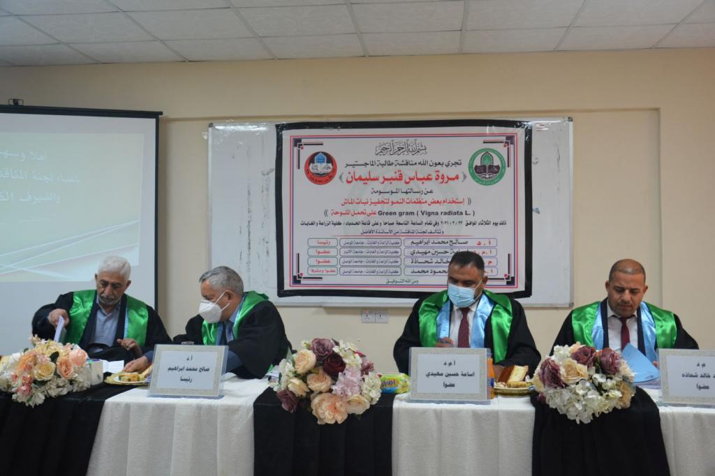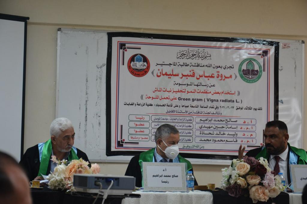 Dr. Muhammad Yunus Al-Allaf (Dean of the College of Agriculture and Forestry) attended a master’s thesis discussion in the Department of Field Crops/ College of Agriculture and Forestry / University of Mosul for the student (Marwa Abbas Qanbar Sulaiman) on Tuesday 23/3/2021 in the Al-Hadba’a hall.The discussion committee consisted of: