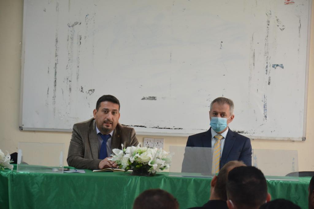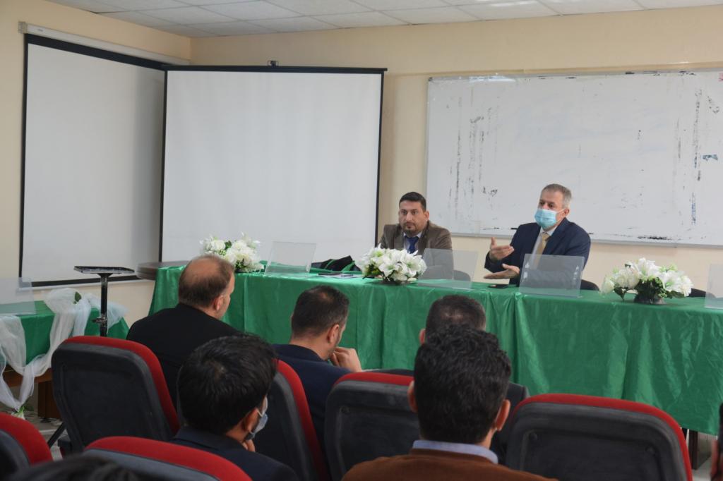 On Monday 31-3-2021, Prof. Dr. Ali Farouq Al-Maadi (Deputy Dean for Academic Affairs) and Dr. Firas Kazem Al-Jubouri (Deputy Dean for Administrative Affairs) met with contract employees in our college.During the meeting, Deputies Dean made sure to follow the controls and instructions and follow the chain of administrative references during the work. They set standards to convert the contract employees into a permanent employee, the most important of which is sincerity at work. The assistants heard some of the problems and obstacles that contract employees face.At the end of the meet, Deputies Dean praised the employees who had proven their worth at work in a short period and had a clear imprint at work.