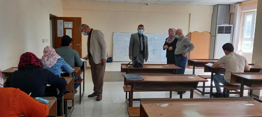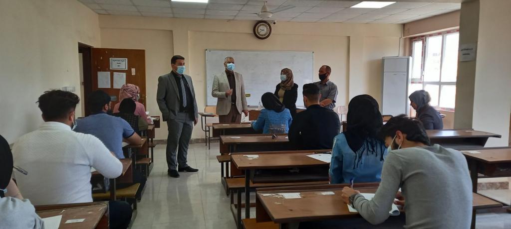 Thursday 4-15-2021, the Dean of the College, Prof. Dr. Muhammad Yunus Al-Allaf, and his assistants for scientific and administrative affairs followed the final exams for students of the scientific departments in our college.The Dean of the College emphasized the implementation of the University Presidency’s directives with the necessity to provide all necessary procedures for the good conduct of the examinations. As well as taking into account social distancing and wearing masks in the examination halls.The Dean wished the students continued success in order to promote the march of science and serve our dear country.