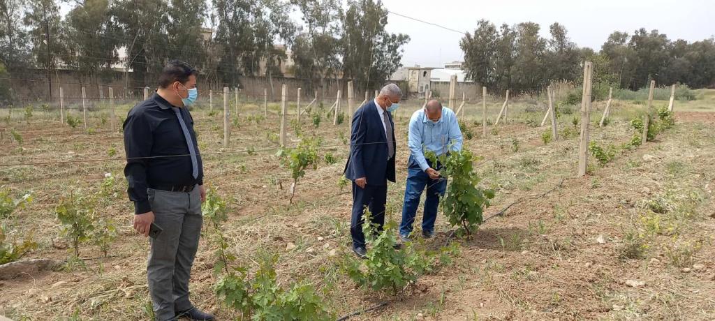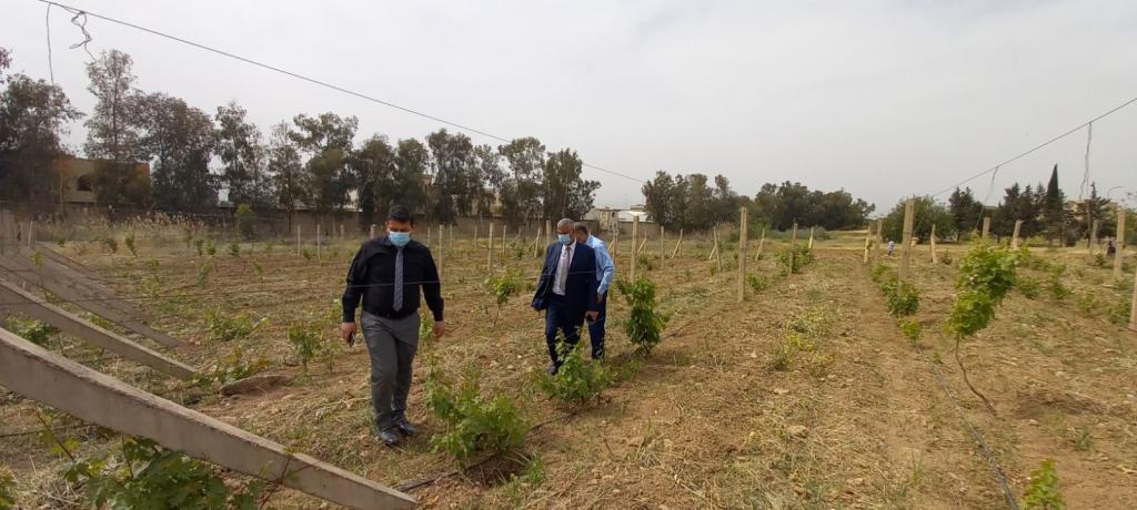 The Dean of the College, Prof. Dr. Muhammad Yunus Al-Allaf, and the Associate Dean for Scientific Affairs visited the grape orchard inside the university campus. Prof. Dr. Nabil Al-Imam (the supervisor of the orchard) gave a full explanation to the Dean about the most important cultivated varieties, the method of breeding used, and the most important service operations for the orchard.The Dean commended the efforts of the supervisor and everyone who works in the orchard in the service of our college.