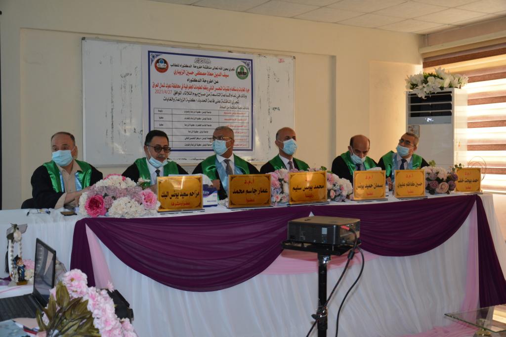 A Ph.D. thesis was discussed in the Department of Forest Sciences / College of Agriculture and Forestry / University of Mosul on (Inventorying forests using remote sensing techniques and geographic information systems in Dohuk Governorate, northern Iraq) for the student (Seif Al-Din Moaz Mustafa) on Tuesday 27/4/2021 in the discussion hall in Al-Hadba’a.The discussion committee consisted of: