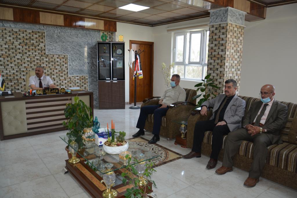 Thursday, April 29, 2021, the Dean of the College, Prof. Dr. Muhammad Yunus Al-Allaf, met a delegation from the Technical Agricultural College of Mosul, which included Dr. Abdel Bar Ahmed Noori (Dean of the Technical Agricultural College), the administrative assistant, the head of the plant production department, and the head of the animal production department.During the meeting, prospects for scientific cooperation between the two parties were discussed. The dean of the faculty indicated that the university’s presidency has directed us to find ways to cooperate with all government departments and educational institutions to serve the scientific reality in our country.The dean of the faculty and a delegation have agreed to expand the scope of this cooperation through the exchange of scientific expertise and the holding of seminars, conferences, and workshops among their affiliates, as well as the exchange of field visits.