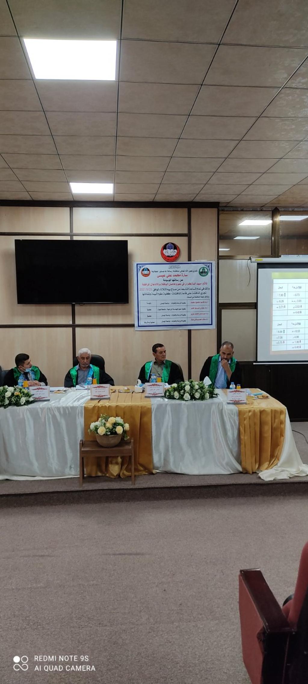 Within the scientific activities of the Department of Field Crops, a master’s thesis was discussed for the student (Sarah Muhammad Ali Issa). The Dean of the College, Prof. Dr. Muhammad Yunus Al-Allaf attended part of the discussion that was held on Monday 25/5/2021, in the Al-Hadbaa Hall.The discussion committee consisted of: