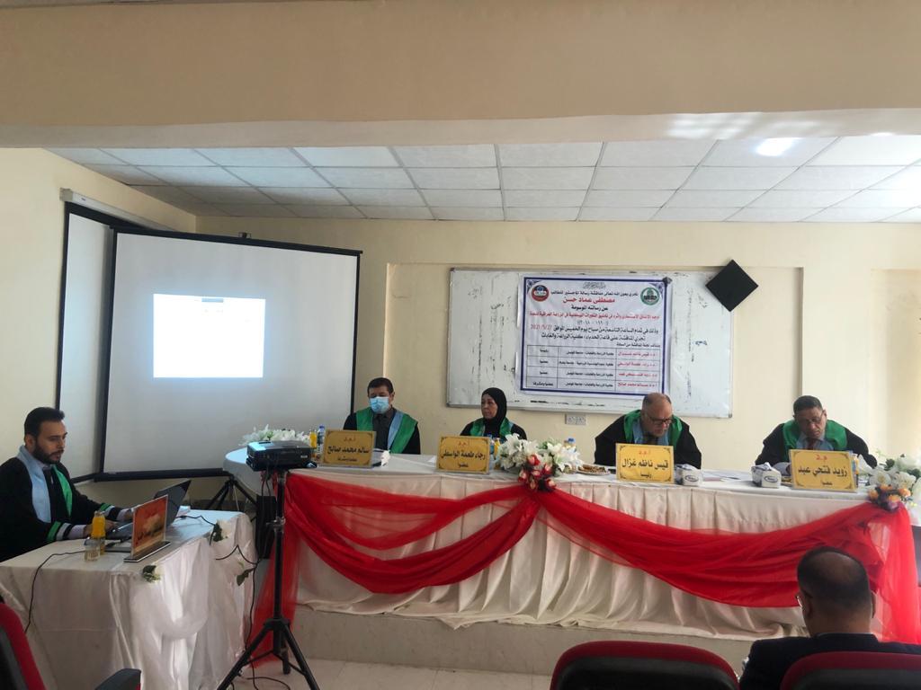 - Dr. Salem Muhammad Saleh … (Member and supervisor).Then the discussion committee read the decision which included acceptance of the thesis and award the student an M.Sc. degree.*****Congratulations on Obtaining Your Master’s Degree*****