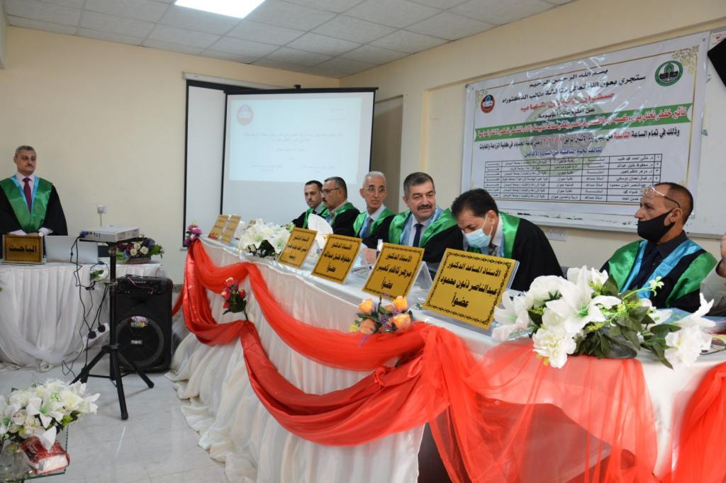 Prof. Dr. Muhammad Yunus Al-Allaf (Dean of the College) and his scientific assistant attended a doctoral thesis discussion in the Department of Animal Production / College of Agriculture and Forestry / University of Mosul for the student (Safwan Luqman Shehab) on Monday 7/6/2021 in the discussion hall in Al-Hadba’a.The discussion committee consisted of: