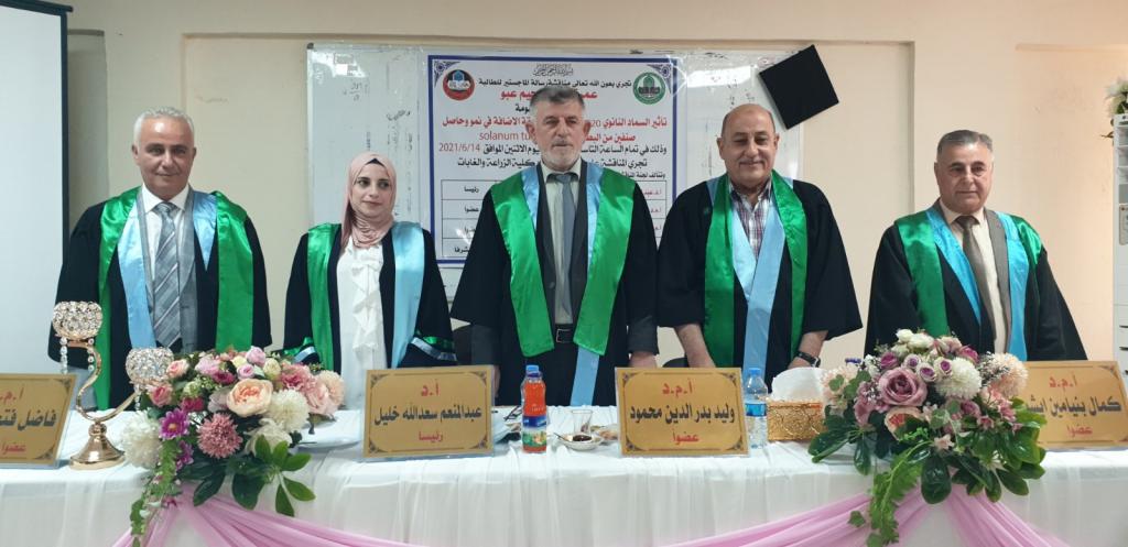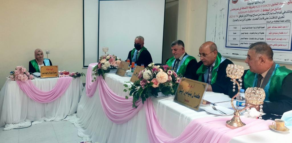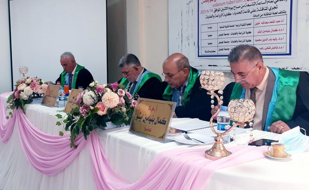 Prof. Dr. Muhammad Younis Al-Allaf (Dean of the College) attended a master’s thesis discussion in the Department of Horticulture and Landscape Architecture, for the student (Amra Abdel Rahim Abbou) on Monday 14/6/2021in the Al-Hadba’a hall.The discussion committee consisted of: