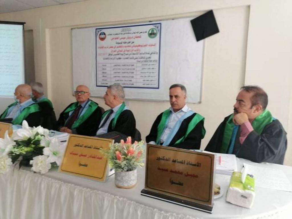- Asst. Prof. Dr. Abdel Qader Abash Sabak …. (Member).6.Asst. Prof. Dr. Hazem Mahmoud Ahmed … (Member and supervisor).Then the discussion committee read the decision which included acceptance of the thesis and award the student a Ph.D. degree.*****Congratulations *****
