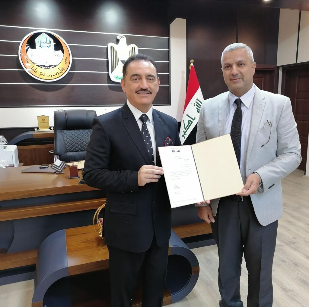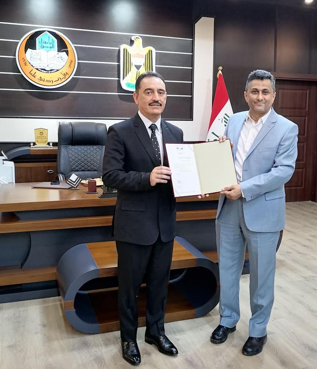 Prof. Dr. Qusay Kamal Al-Din Al-Ahmadi (President of the University of Mosul) met with Prof. Dr. Muhammad Younis Al-Allaf (Dean of the College of Agriculture and Forestry), Dr. Alaa Hashem Al-Tai (Head of the Department of Horticulture and Landscaping), and Dr. Iyad Hani Al-Allaf (Responsible for Media and Relations Division)During the meeting, the President of the University valued their efforts in obtaining third place at the level of scientific writing in the competition launched by the Arid platform. The President of the University appreciated the efforts made by the researchers, academics, and employees of the Mosul University, who are always distinguished in raising the status of the University through their active participation in scientific forums.On the other hand, the Dean of the College expressed his thanks and appreciation to the President of the University for his active role and his generous follow-up to these activities.****** Congratulations on this achievement*****