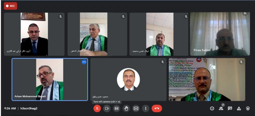Prof. Dr. Muhammad Younis Al-Allaf (Dean of the College) attended a master’s thesis discussion in the Department of Agricultural Machines and Equipment, for the student (Ali Omar Ibrahim) on Wednesday 23/6/2021in the Al-Hadba’a hall.The discussion committee consisted of:1-Prof. Dr. Saad Abdul-Jabbar Asmir … (Chairman).2-Asst. Prof. Dr. Thaer Turki Abdul-Karim … (Member).3-Asst. Prof. Nofal Issa Muhaimid … (Member).4-Prof. Dr. Arkan Muhammad Amin … (Member and supervisor).5-Asst. Prof. Dr. Firas Salem Khalaf … (Member and supervisor).Then the discussion committee read the decision which included acceptance of the thesis and award the student an M.Sc. degree.*****Congratulations on Obtaining Your Master’s Degree*****