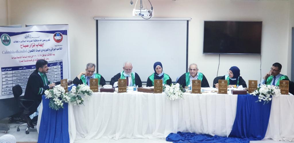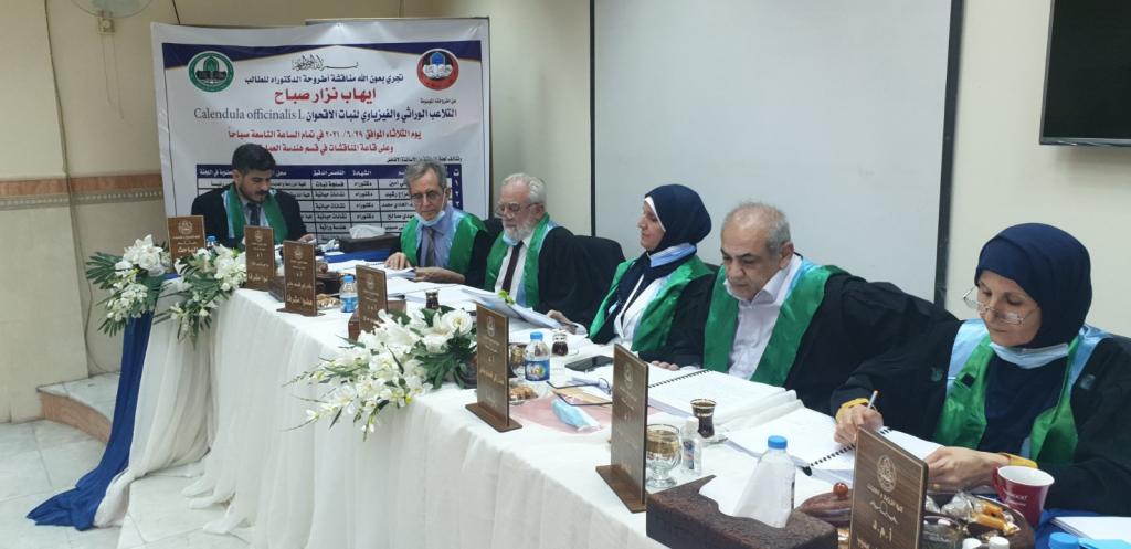 A Ph.D. thesis was discussed in the Department of Horticulture and Landscape Architecture / College of Agriculture and Forestry / University of Mosul on (Genetic and physical manipulation of the chrysanthemum plant) for the student (Ihab Nizar Sabah) on Tuesday 26/6/2021. The Dean of the College attended a part of the discussion.The discussion committee consisted of: