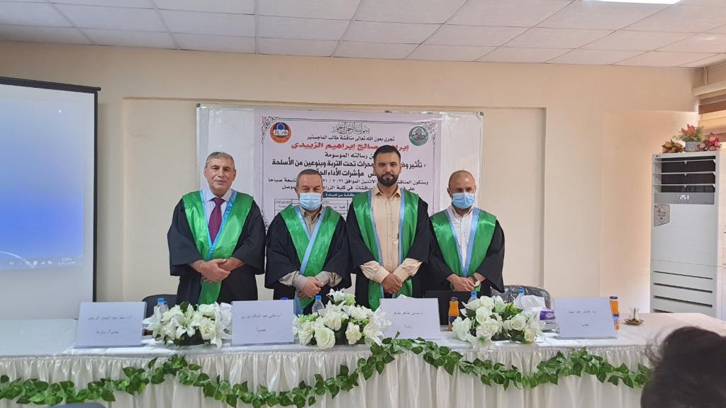 A master’s thesis was discussed in the Department of Agricultural Machines and Equipment/ College of Agriculture and Forestry / University of Mosul, for the student (Ibrahim Saleh Ibrahim) on Monday 26/7/2021. Prof. Dr. Muhammad Yunus Al-Allaf (Dean of the College) and assistant dean for scientific and administrative affairs attended a part of the discussion.The discussion committee consisted of: