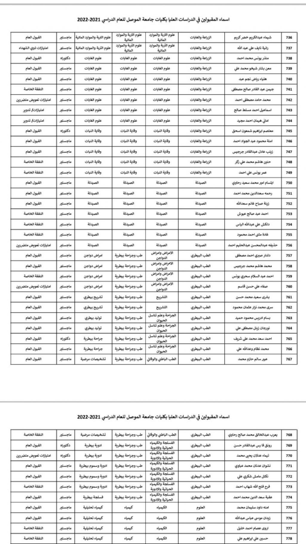 The Deanship of the College of Agriculture and Forestry congratulates the students who have been accepted into the study, and they must contact the Graduate Studies Division in our college to see the admission procedures and complete the requirements.