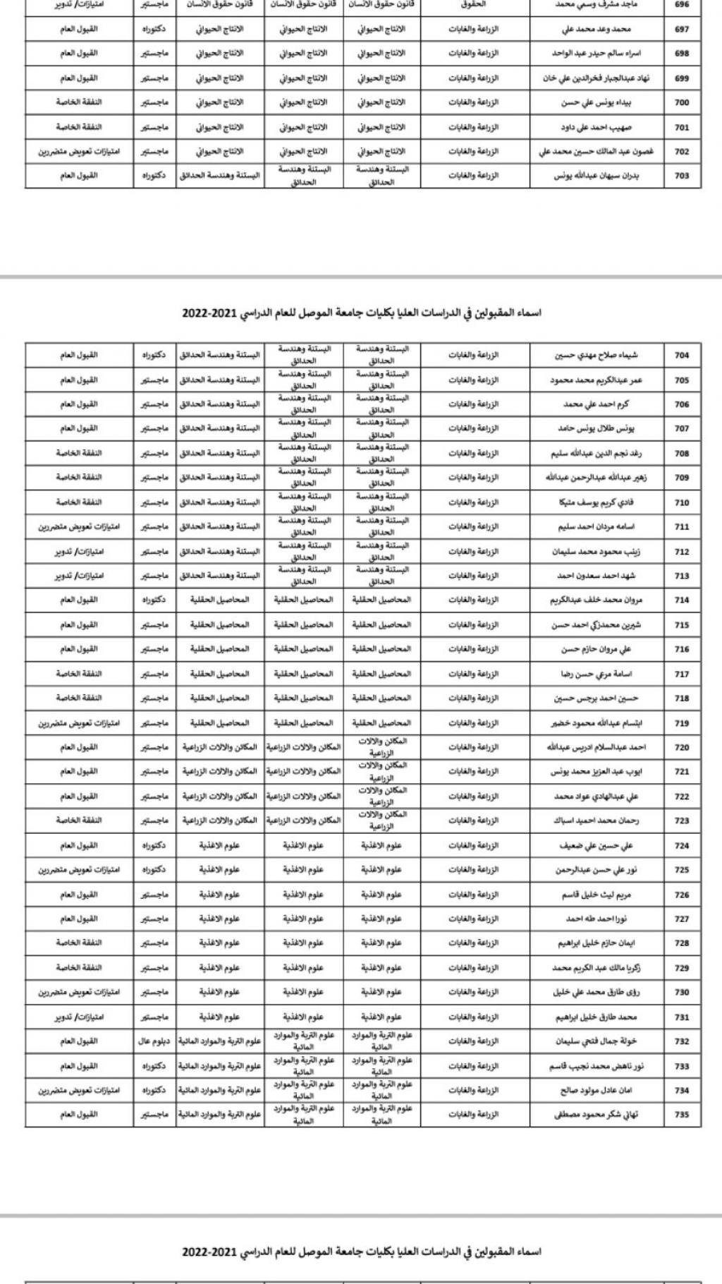 The university order regarding the admission of graduate students to our college for the academic year 2021-2022.