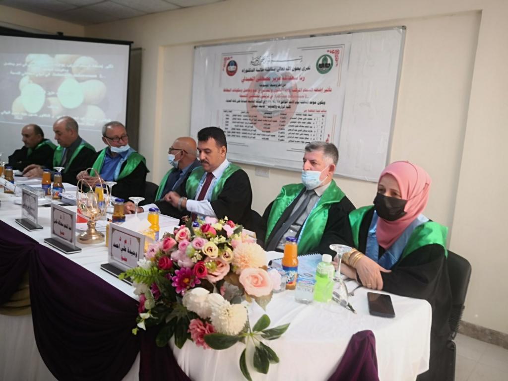 A Ph.D. thesis was discussed in the Department of Soil Sciences and Water Resources / College of Agriculture and Forestry / University of Mosul, for the student (Rana Saadallah Aziz Al-Abdali) on Sunday 19/9/2021 in the discussion hall in Al-Hadba’a. Prof. Dr. Ali Farouk Al-Maadidi (Assistant Dean for Scientific Affairs) attended a part of the discussionThe discussion committee consisted of: