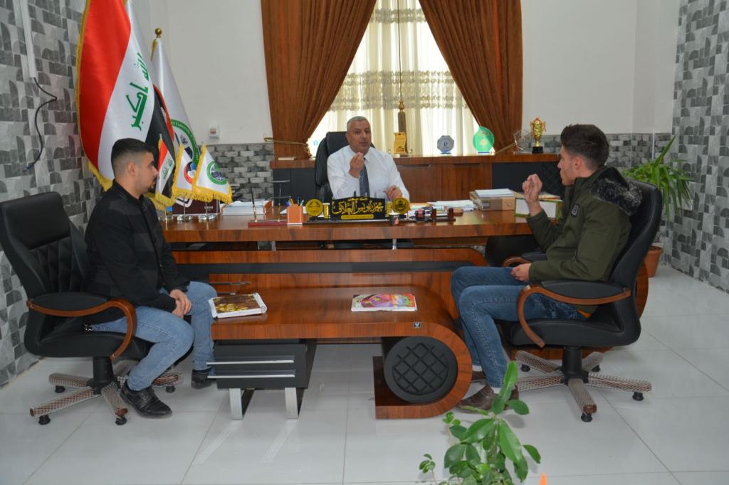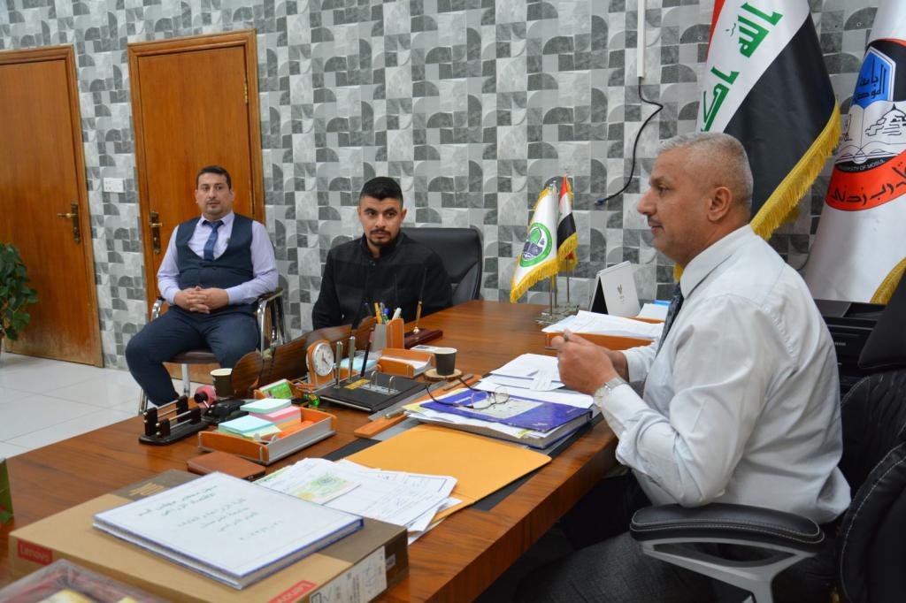 Prof. Dr. Muhammad Younis Al-Allaf (Dean of the College) met with a number of students representing the academic levels. The meeting included a discussion of several topics related to the scientific, administrative, social, and cultural aspects of the college. The meeting was attended by the assistant dean for scientific and administrative affairs. Several important points were raised and discussed by representatives of the school stages to identify the most important obstacles that students face during their educational journey. On the other hand, the Dean of the College promised the students to overcome all the difficulties facing our students.