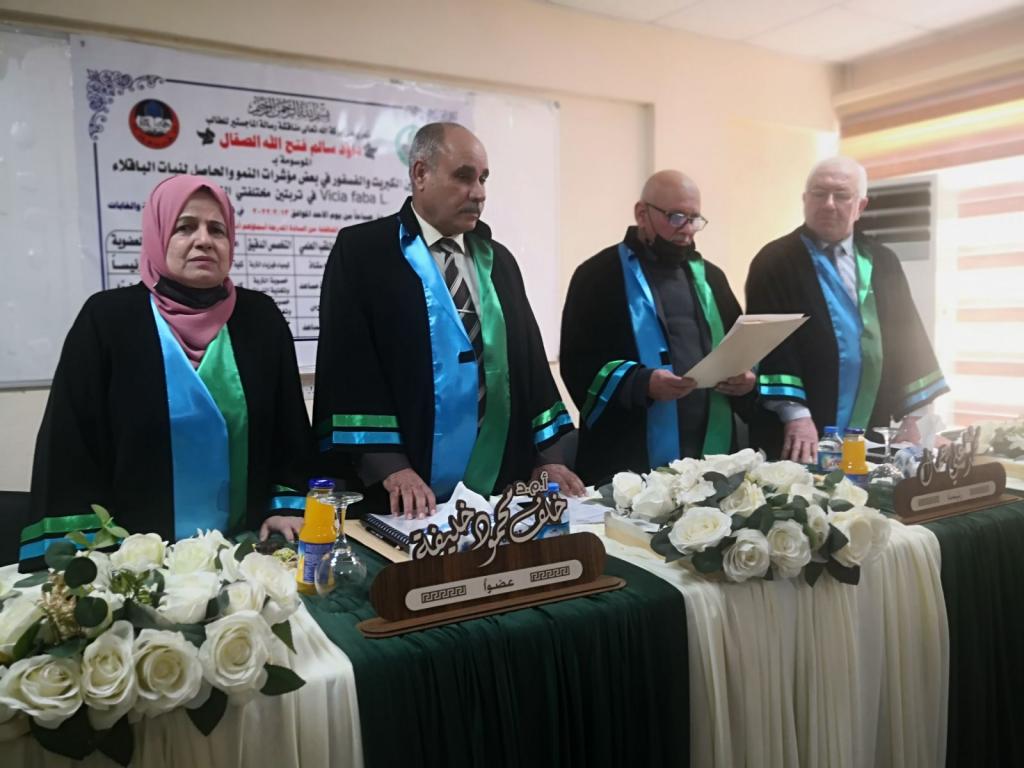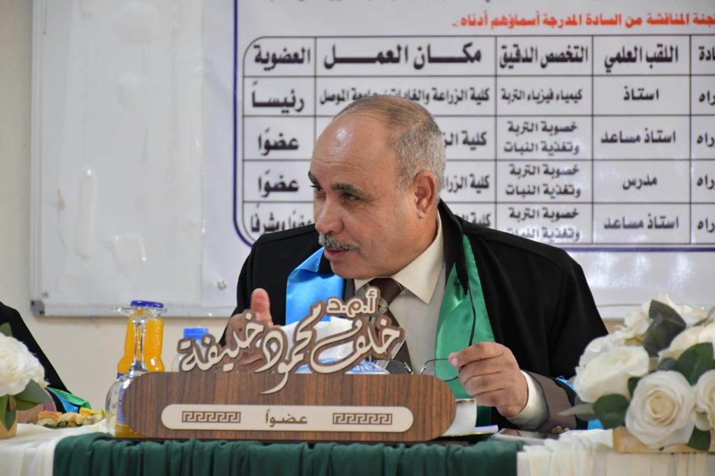 A master’s thesis was discussed in the Department of Soil Sciences and Water Resources / College of Agriculture and Forestry / University of Mosul for the student (Daoud Salem Al-Saqal) on Sunday, 13/2/2022. Prof. Dr. Muhammad Younis Al-Allaf (Dean of the College) attended part of the discussion.The discussion committee consisted of: