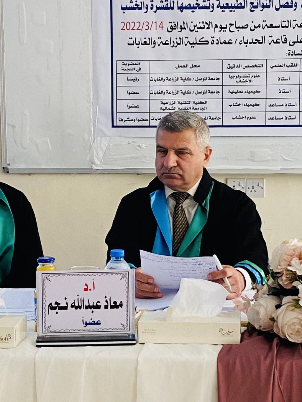 A master’s thesis was discussed in the Department of Forestry Sciences / College of Agriculture and Forestry / University of Mosul for the student (Rasul Muhammad Ahmed) on Monday, 14/3/2022. Prof. Dr. Muhammad Yunus Al-Allaf (Dean of the College) attended a part of the discussion.The discussion committee consisted of: