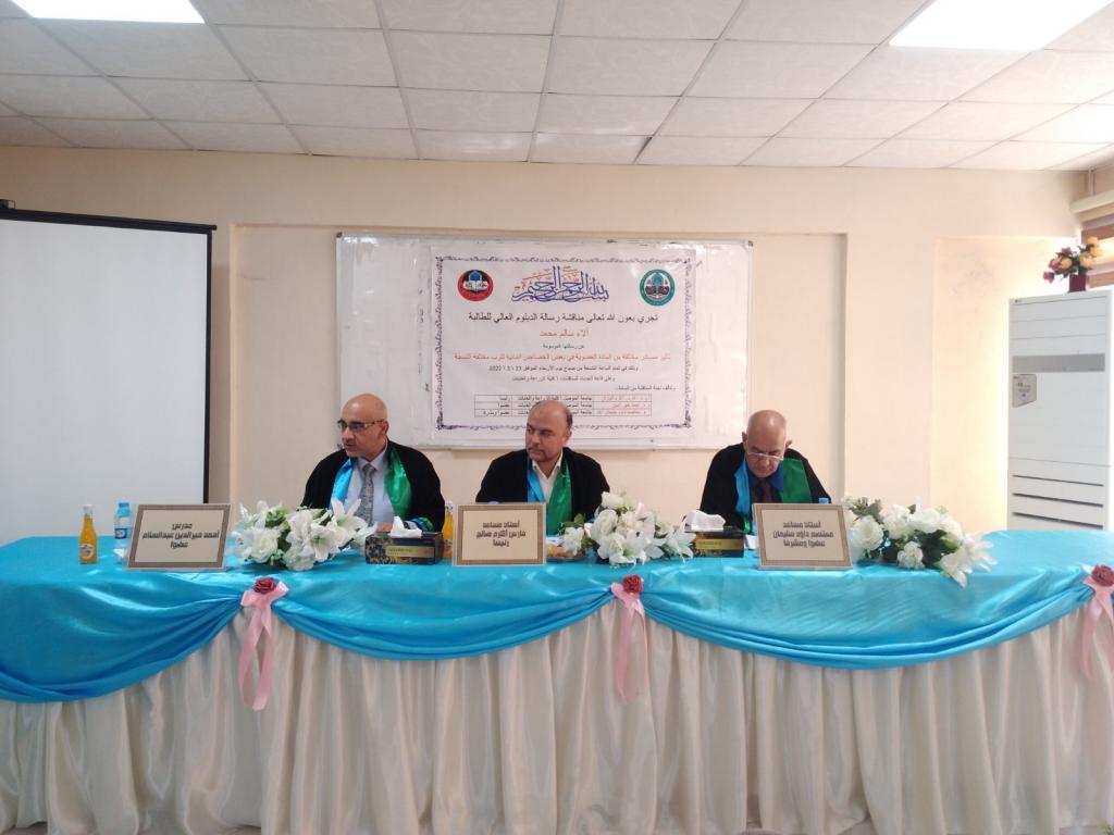 - Asst. Prof. Moatasem Daoud Agha (Member and supervisor).Then the discussion committee read the decision, which includes accepting the research and granting the student a higher diploma degree.***** *Congratulations* ******