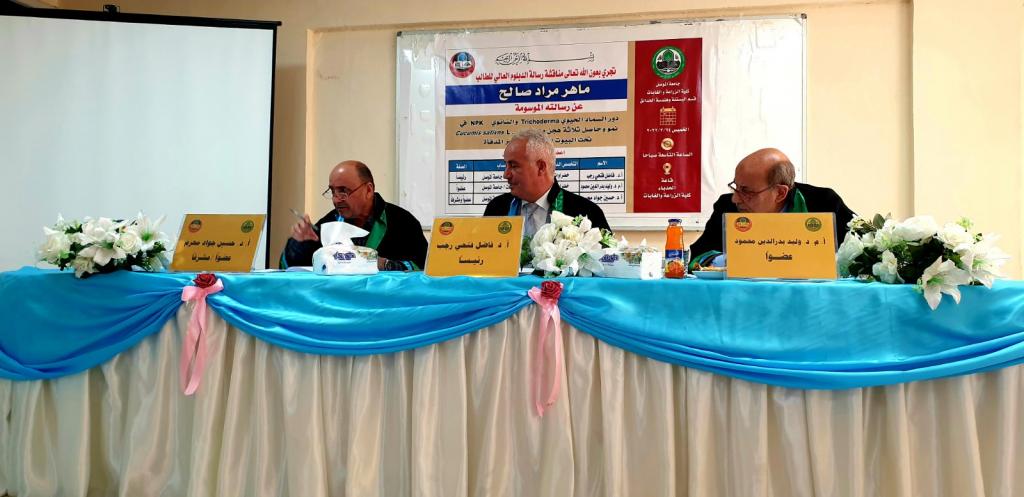 - Prof. Dr. Hussain Jawad Muharram Al-Bayati (Member and supervisor).Then the discussion committee read the decision, which includes accepting the research and granting the student a higher diploma degree.***** *Congratulations* ******