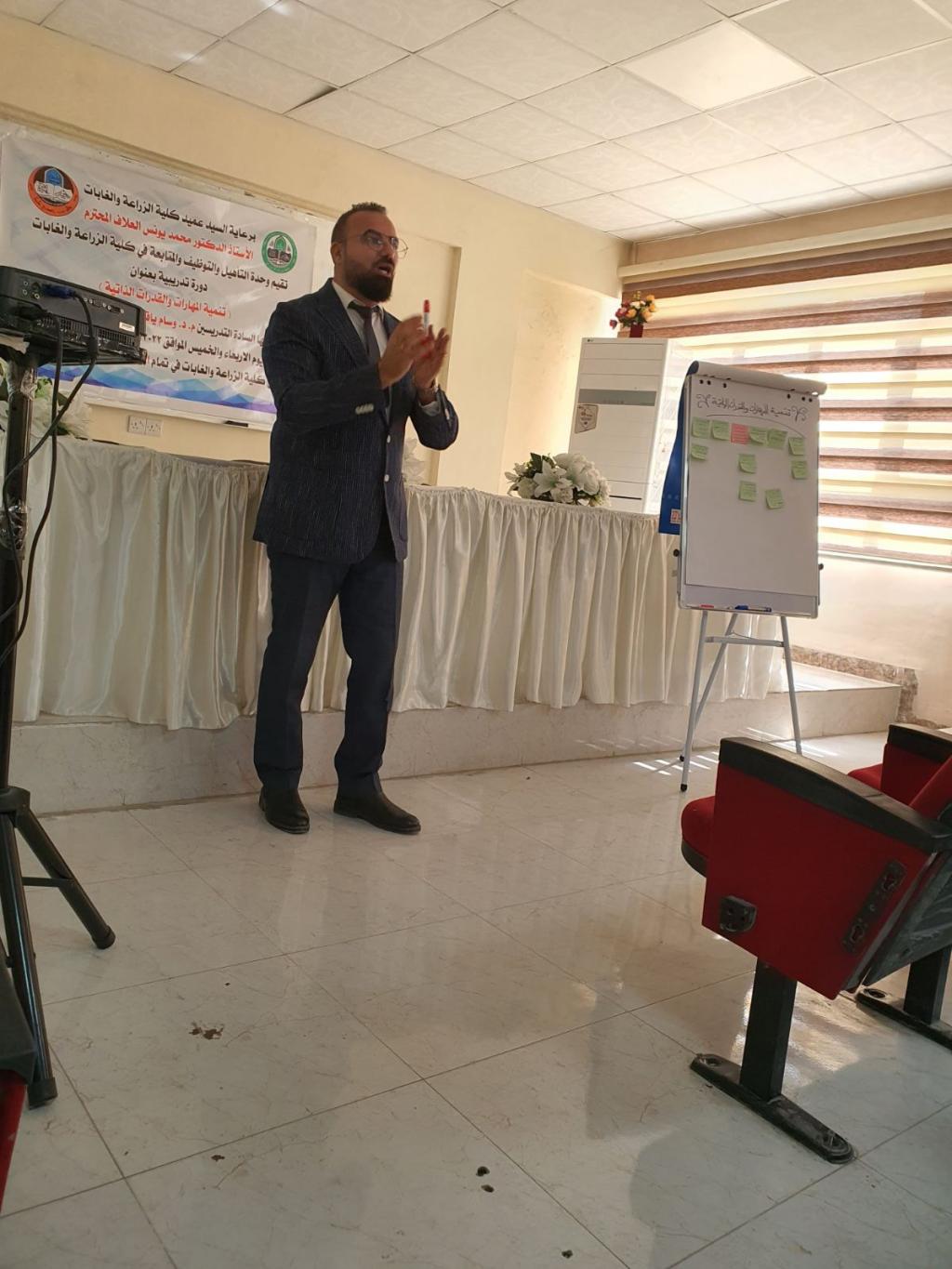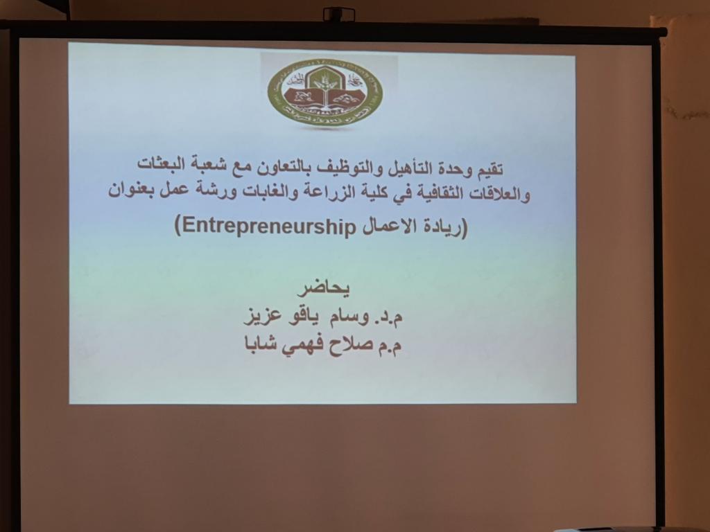 The Rehabilitation, Employment, and Follow-up Unit at the College of Agriculture and Forestry held a workshop on developing the self-skills of graduate students in cooperation with the Scholarships and Cultural Relations Division. The lecturers at the seminar are Dr. Wissam Yago Aziz and Mr. Salah Fahmy. The course included three essential topics: how to make a c.v., pass a job interview and entrepreneurship. The number of participants was 30 male and female graduates.
