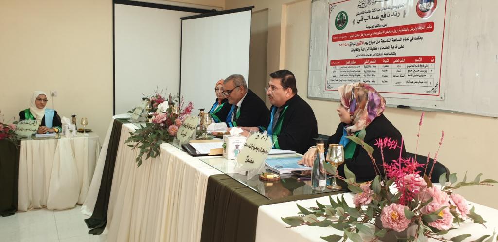 A master’s thesis was discussed in the Department of Horticulture and Landscape Architecture / College of Agriculture and Forestry / University of Mosul for the student (Rand Nafeh Abdel-Baqi) on Monday 9/5/2022.The discussion committee consisted of: