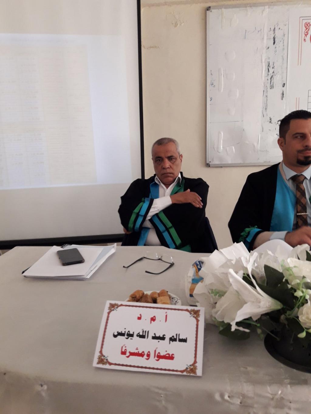 - Asst. Prof. Dr. Salem Abdullah Younis …. (Member and supervisor).Then the discussion committee read the decision, which included accepting the thesis and awarding the student a Ph.D. degree.*****Congratulations *****