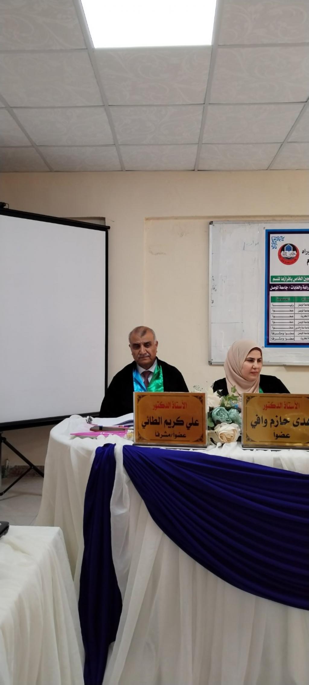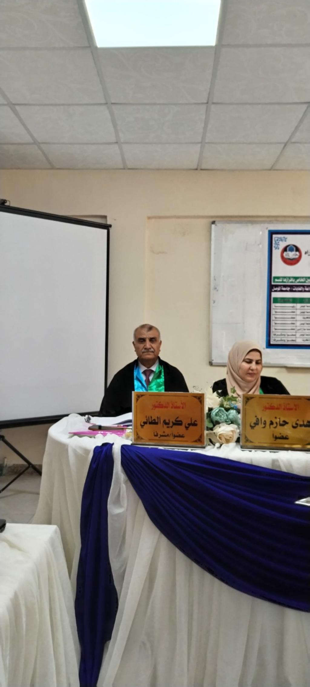- Prof. Dr. Ali Karim Al-Tai …. (Member and supervisor).Then the discussion committee read the decision, which included accepting the thesis and awarding the student a Ph.D. degree.*****Congratulations *****