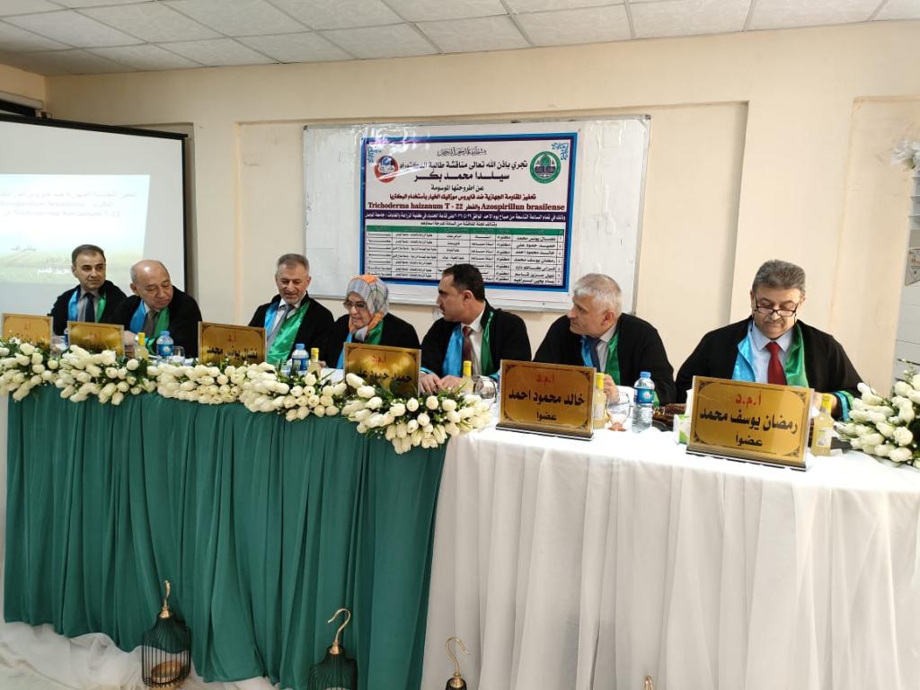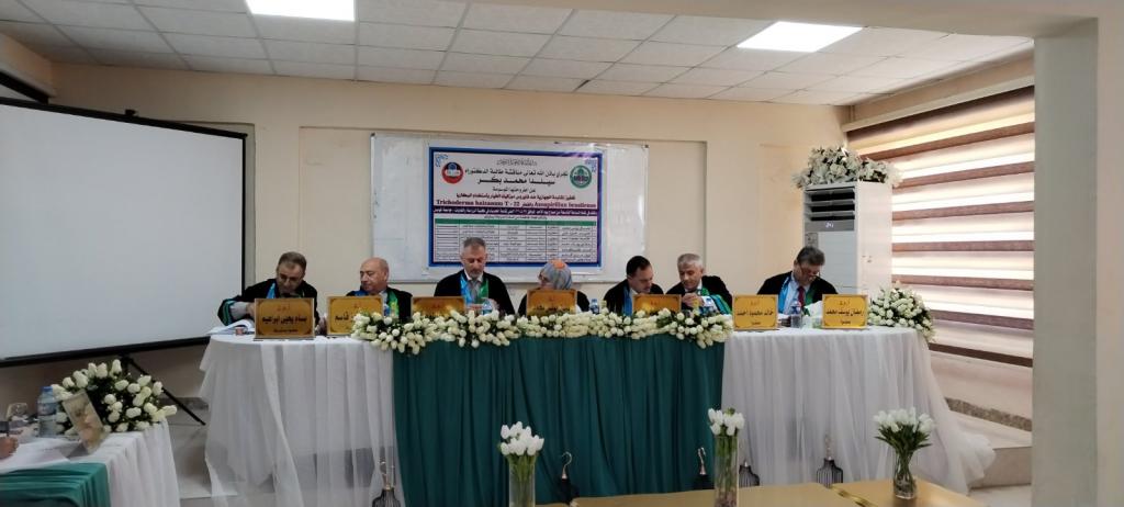 A Ph.D. thesis was discussed in the Department of Plant Protection / College of Agriculture and Forestry / University of Mosul for the student (Selda Muhammad Bakr) on Sunday, 29/5/2022. Prof. Dr. Muhammad Younis Al-Allaf (Dean of college) attended a part of the discussion.The discussion committee consisted of:
