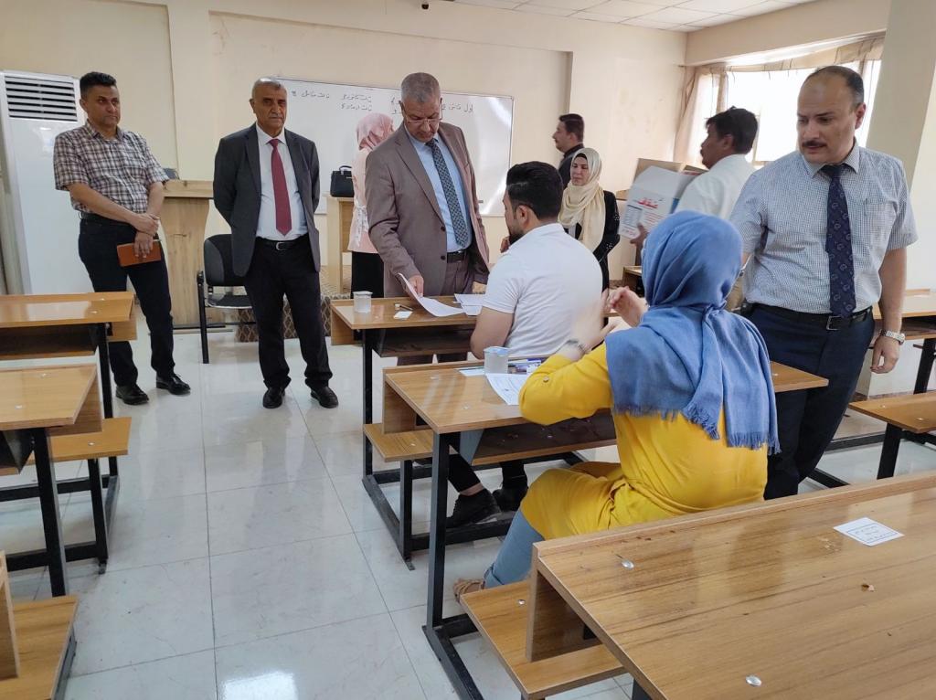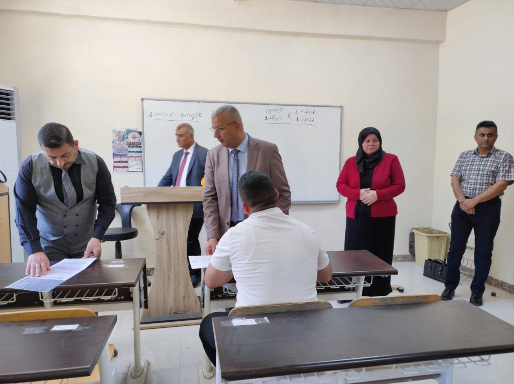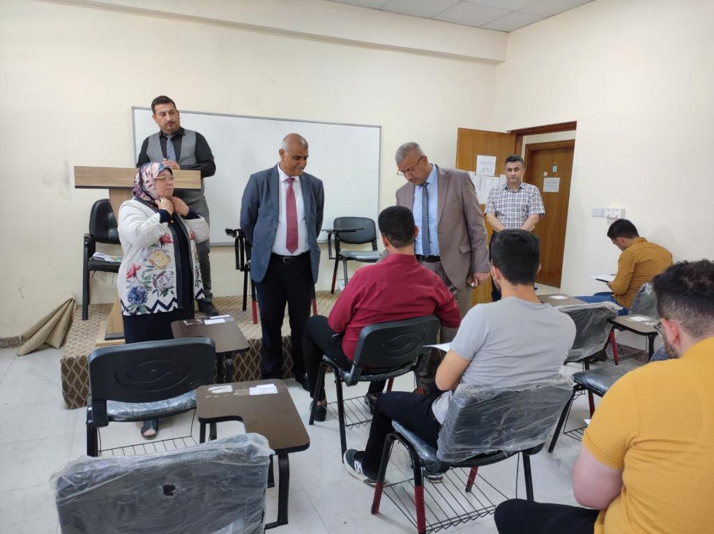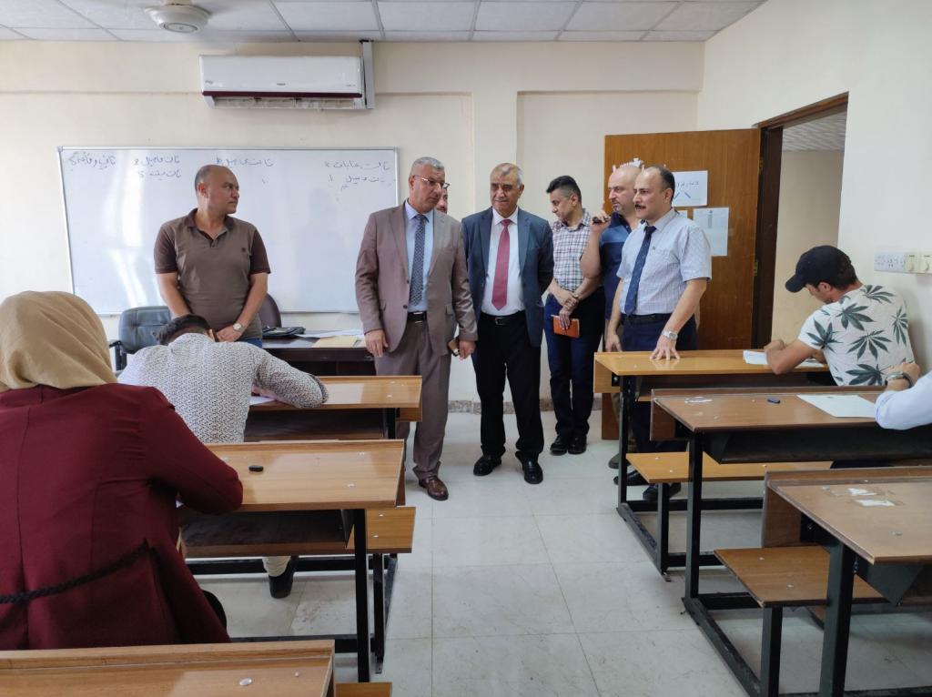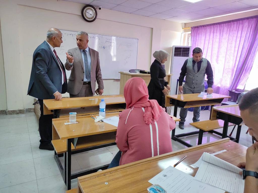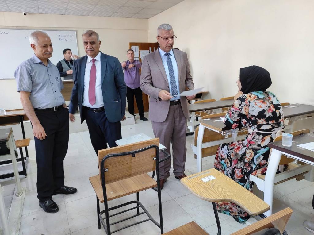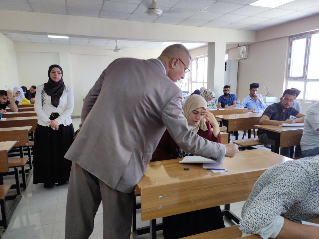Today, Sunday, June 12, 2022, with the start of the final exams for undergraduate students in the College of Agriculture and Forestry, Prof. Dr. Muhammad Younis Al-Allaf (Dean of the Faculty) inspects the examination halls to see the mechanism of the examination process and the services provided to the examinee students. The Assistant Dean for Scientific and Administrative Affairs, the Chairman of the Examination Committee, and the Media and Public Relations Division Head attended the inspection visit. During the inspection tour, the Dean met the directors of the examination halls and directed the need to create and provide the best conditions for students in the examination halls. The Dean of the College conducted several interviews with the students and asked them about the examination questions. The Dean wished everyone good luck and success.
