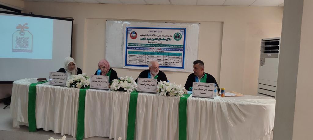 A master’s thesis was discussed in the Department of Horticulture and Landscape Architecture / College of Agriculture and Forestry / University of Mosul for the student (Dalal Kamal El-Din Abdel-Majeed) on Wednesday, 22-June -2022. Prof. Dr. Muhammad Yunus Al-Allaf (Dean of the College) attended a part of the discussion.The discussion committee consisted of: