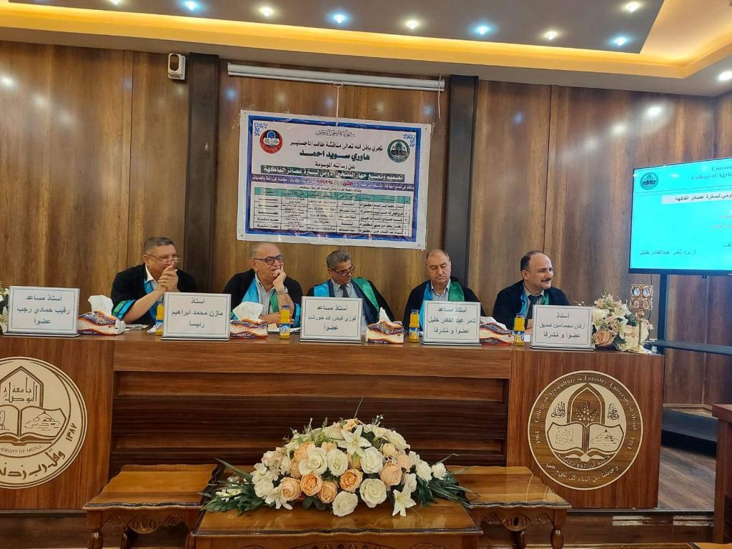 - Prof. Dr. Arkan Muhammad Amin Siddiq. … (Member and supervisor).5- Dr. Thamer Abdel Qader Khalil. … (Member and supervisor)Then the discussion committee read the decision, which included acceptance of the thesis and awarded the student an M.Sc. degree.*****Congratulations on Obtaining Your Master’s Degree*****