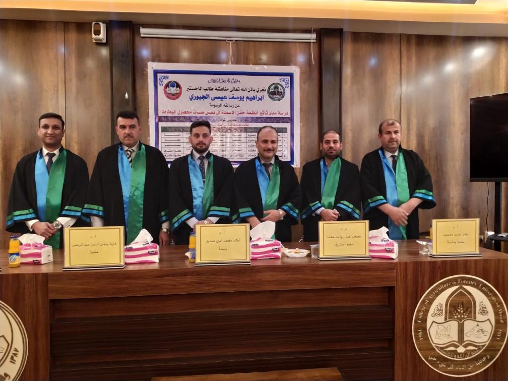 A master’s thesis was discussed in the Department of agricultural machines and equipment / College of Agriculture and Forestry / University of Mosul for the student (Ibrahim Youssef Issa) on Thursday, 4-August -2022. Prof. Dr. Muhammad Younis Al-Allaf (Dean of the Agriculture and Forestry College) attended part of the discussion.The discussion committee consisted of: